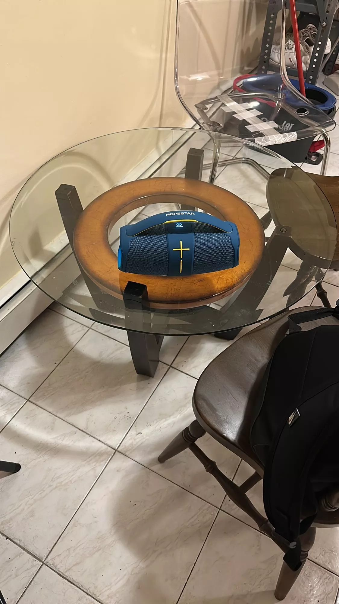 The RGB light effects really enhance our nighttime listening experience.