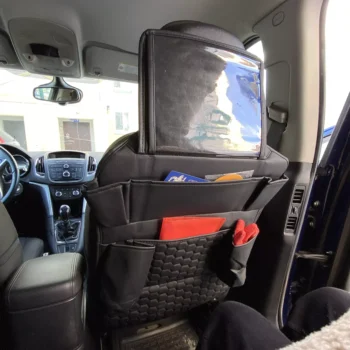 got this car back of seat organizer for our family road trips and it’s been amazing. the multiple pockets are perfect for holding toys, snacks, and books, keeping everything organized and within reach. it was really easy to install and fits securely on the seat. the material is strong and durable, standing up to constant use by my kids. it’s also very easy to clean, which is important for those inevitable spills. it stays in place and doesn’t move around, even when the car is in motion. this organizer has made our car rides much more organized and stress-free. highly recommend it for anyone with kids.