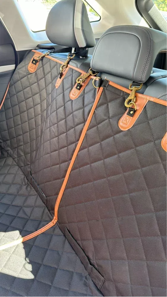 This dog hammock has become an essential for our family road trips! It's easy to install and stays put thanks to seat anchors and sturdy straps. I love how it protects my car seats from spills with its waterproof fabric.