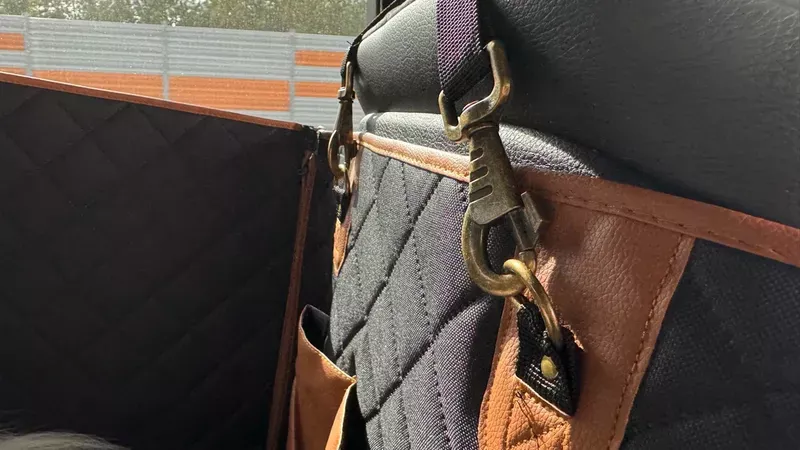 The extra storage space provided by this product is simply amazing! It has two handy pockets where I can store all of my pet’s favorite toys and treats, as well other essentials like leashes and travel bowls. This feature really helps me keep everything organized and within reach during our trips.