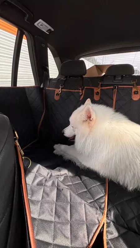 I can't imagine using any other product to safeguard my leather seats from my dog! It prevents her toys from falling onto the car floor. The non-slip underside ensures the cover stays in place, giving her better stability. It's also water-resistant and features a pocket where I store her essentials like a collapsible water bowl and leashes.