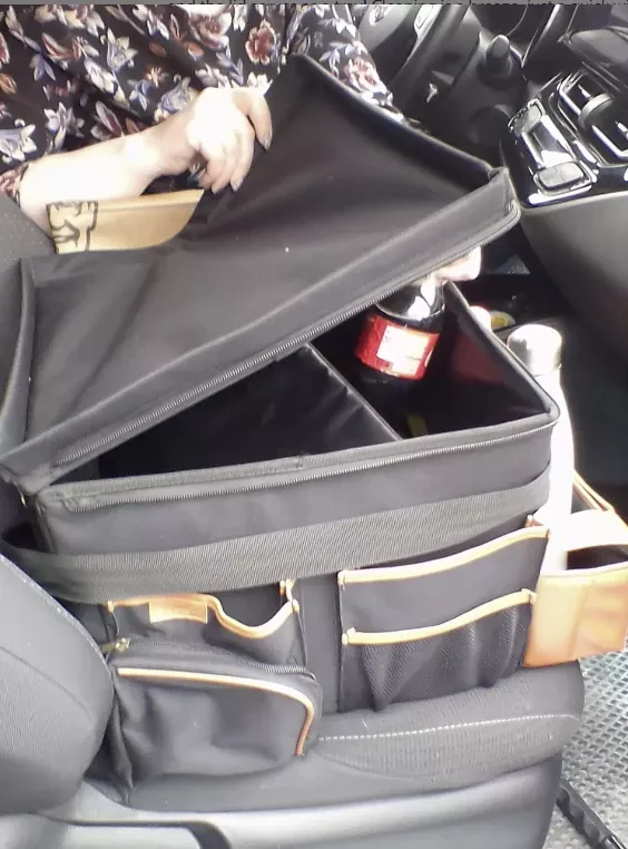 Now this is my favorite car organizer! I received my order a month ago. I purchased this to keep in the back seat with my son. Inside, I stored everything that was lying in my car and didn't have its place. And I use the pockets to store my son's toys, snacks and drinks. So convenient! My son also loves the lid and uses it as a table. High-quality, stylish, and really versatile organizer! Thanks a lot!