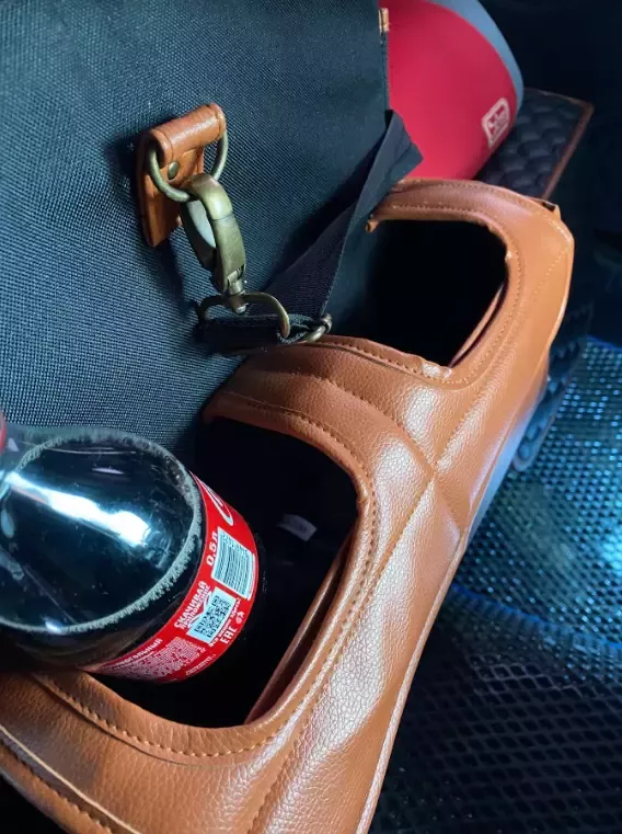Cool back seat organiser, but we simply put it in the back seat and left it there. We don't need the carrying strap at all.