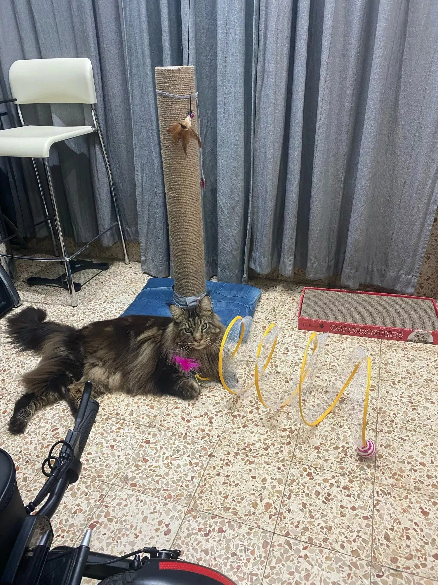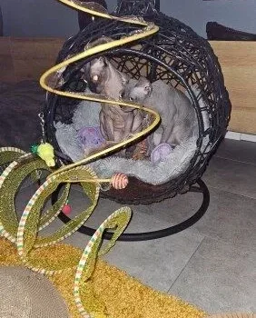 This cat toy surpasses all expectations. Initially purchased for our cats, it has provided endless entertainment for us as well. The thoughtful design incorporates various elements that cats love, from the velvet coil to the jute ball and feathers. It's a hit with our furry friends, and we highly recommend it.