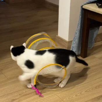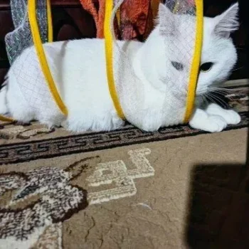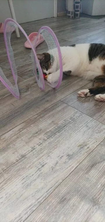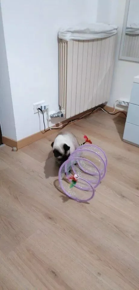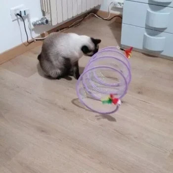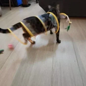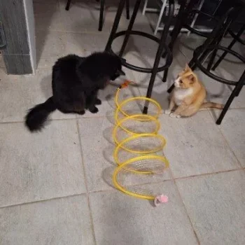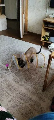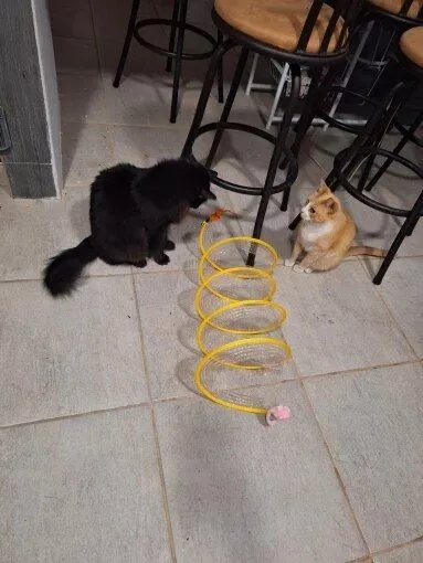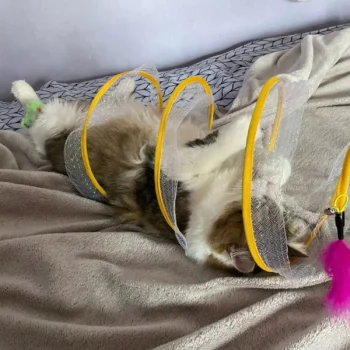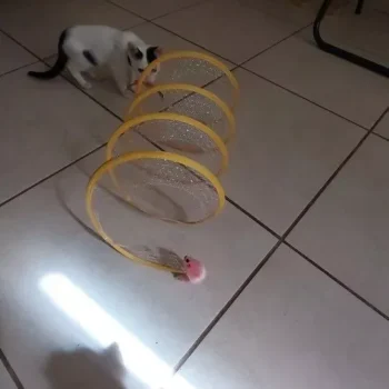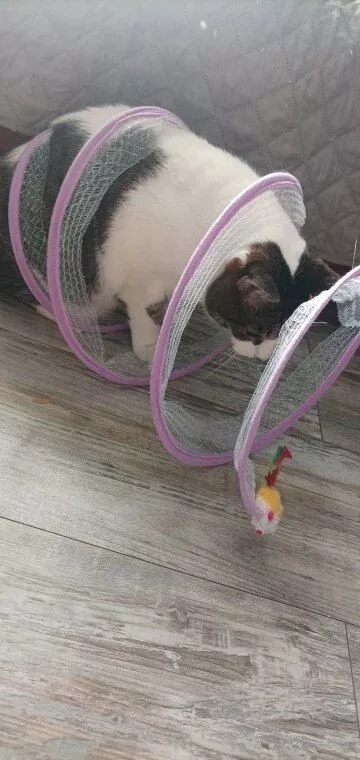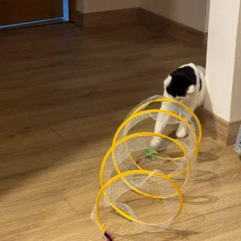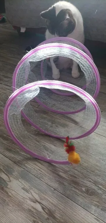 This cat adventure tunnel has been a hit with my cats. they absolutely love running through it and playing hide and seek. the material is sturdy and the crinkly texture adds an extra element of fun. it was easy to set up and is lightweight enough to move around the house. the tunnel also folds up nicely when not in use, making it easy to store. since we got this tunnel, my cats have been more active and entertained. it’s great to see them enjoying themselves so much. the tunnel is spacious enough for them to play comfortably and they love the different entrances. this has been a great addition to their toys and has provided endless hours of fun. i highly recommend this tunnel to other cat owners looking for a durable and entertaining toy for their furry friends.