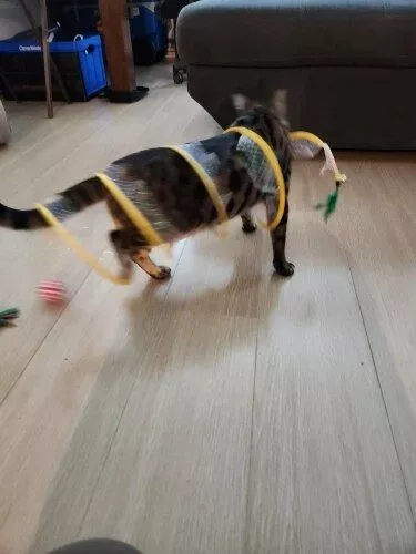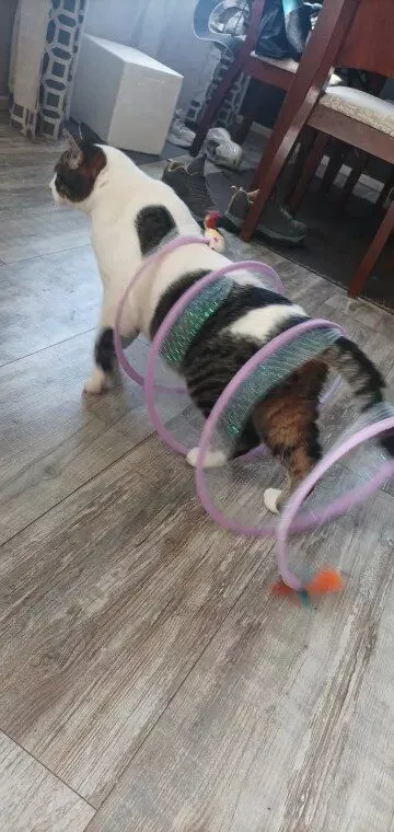 Although my cats were initially hesitant, they eventually warmed up to this toy, particularly enjoying the bell toys on the ends. Now, they use it as intended, running through it with enthusiasm.