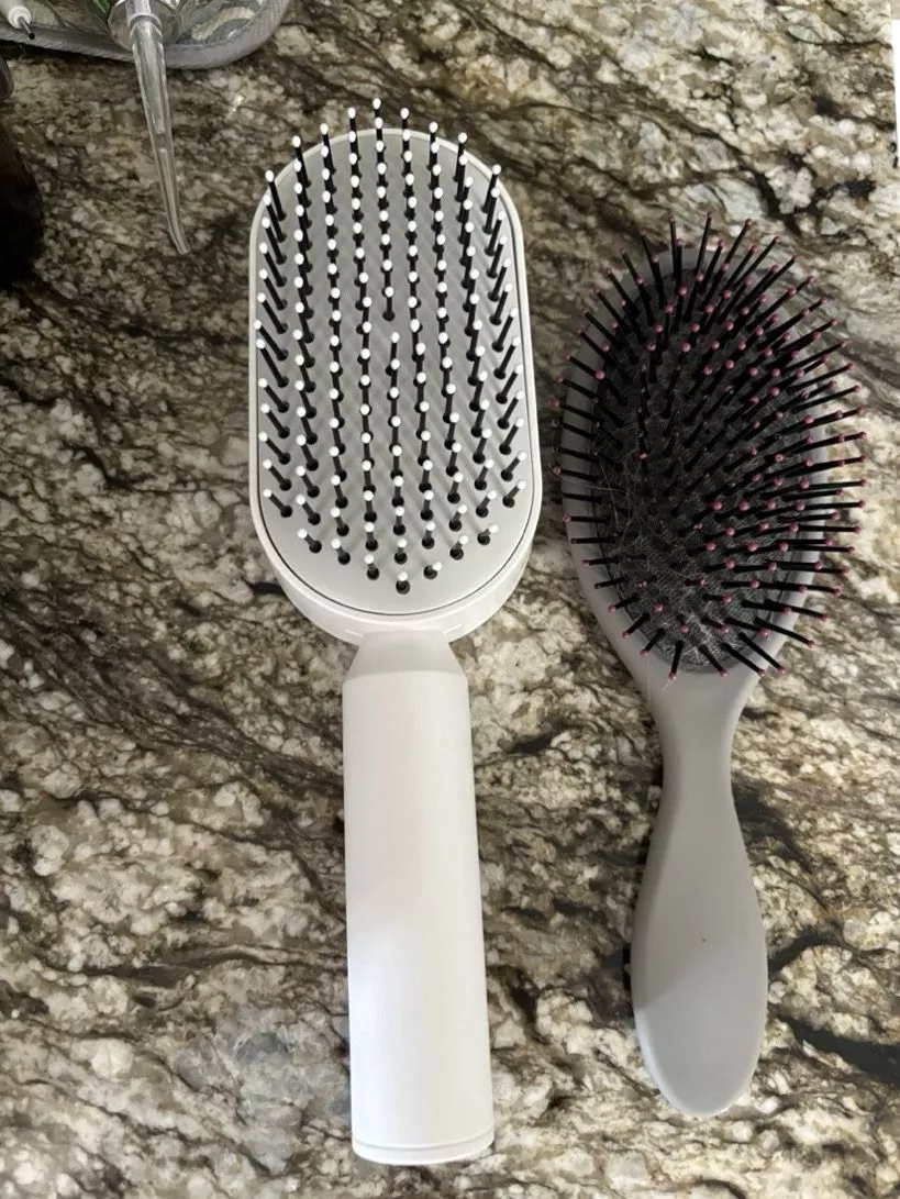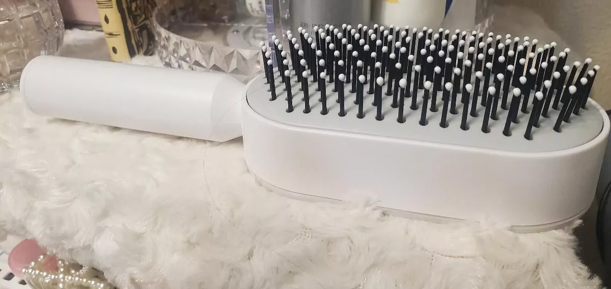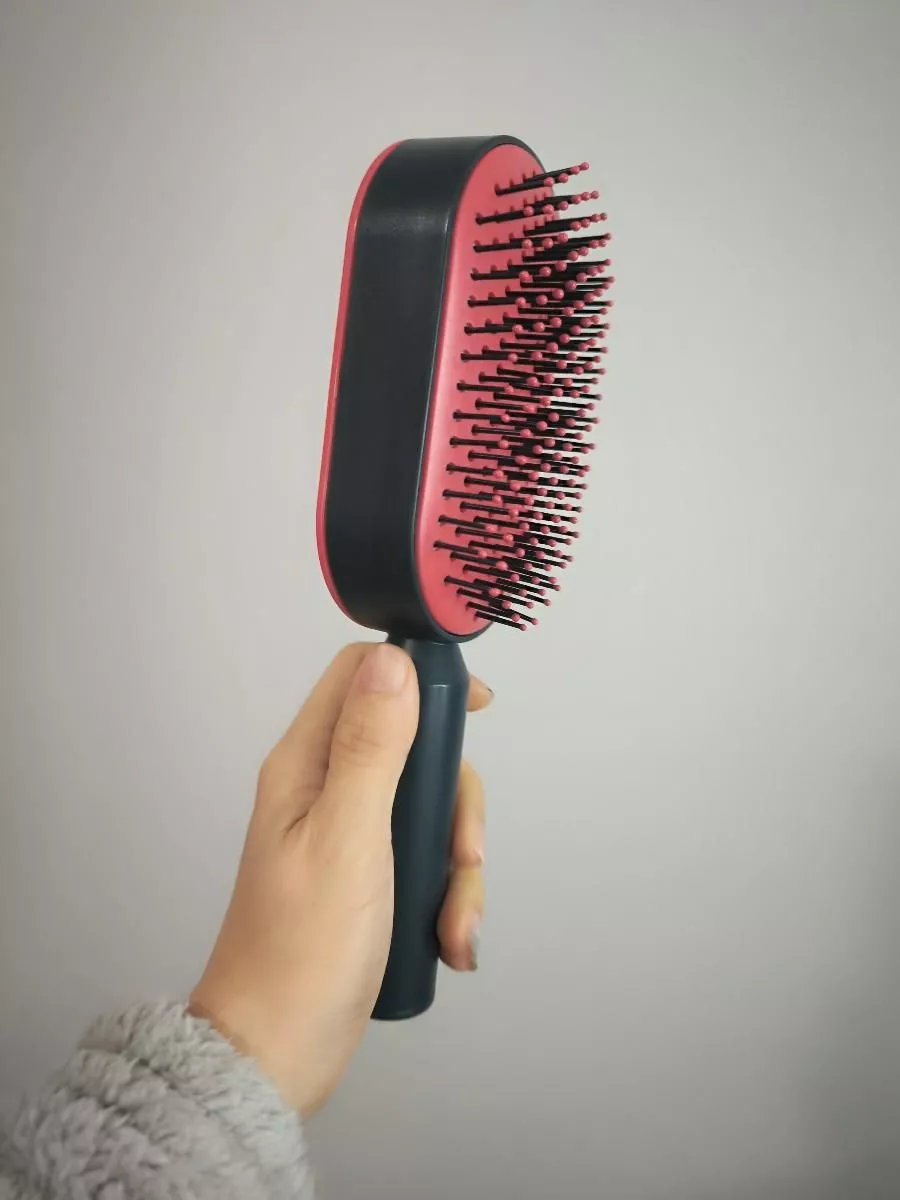 This brush has been an absolute game-changer in my daily grooming routine. It's so easy to clean with its one-key self-cleaning system - just push out trapped hair with a click! I've noticed less breakage since using this brush as it detangles without pulling at my strands.