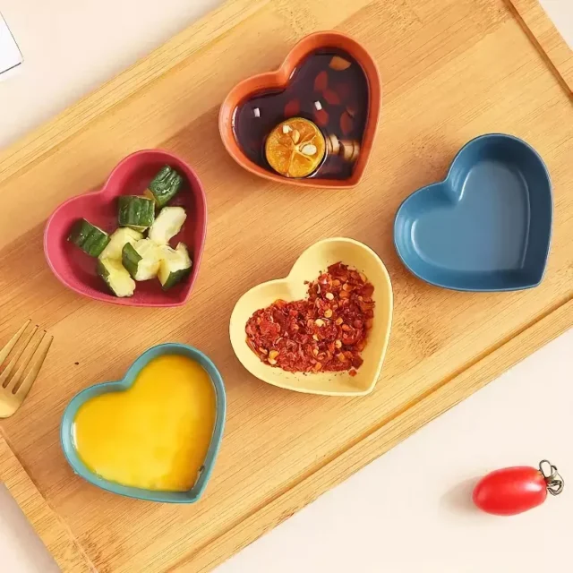 What sets our Heart-Shaped Seasoning Dish apart is its combination of functionality and aesthetics. Made from eco-friendly wheat straw plastic, it’s not only durable but also environmentally conscious. The heart shape adds a unique and playful touch, making it a delightful item in your kitchen or on your dining table. It’s more than just a dish; it’s a statement of style and sustainability.