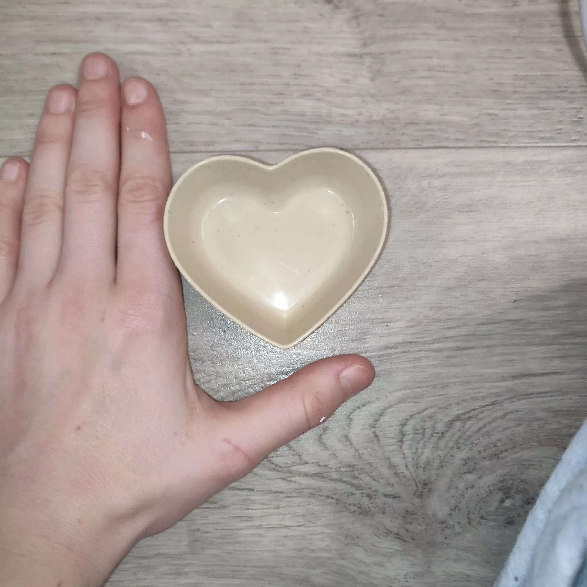 The cutest plate! Very comfortable, stable, roomy (M & M's 45g bag will mix perfectly), I think I will order a couple of different things!! These little heart bowls are so pretty. My cats eat fancy feast and they are the right size for a serving of food, my cats get fed 4-5 times a day, I just stick them in dishwasher and they come completely clean and i use sanitizer rinse cycle..