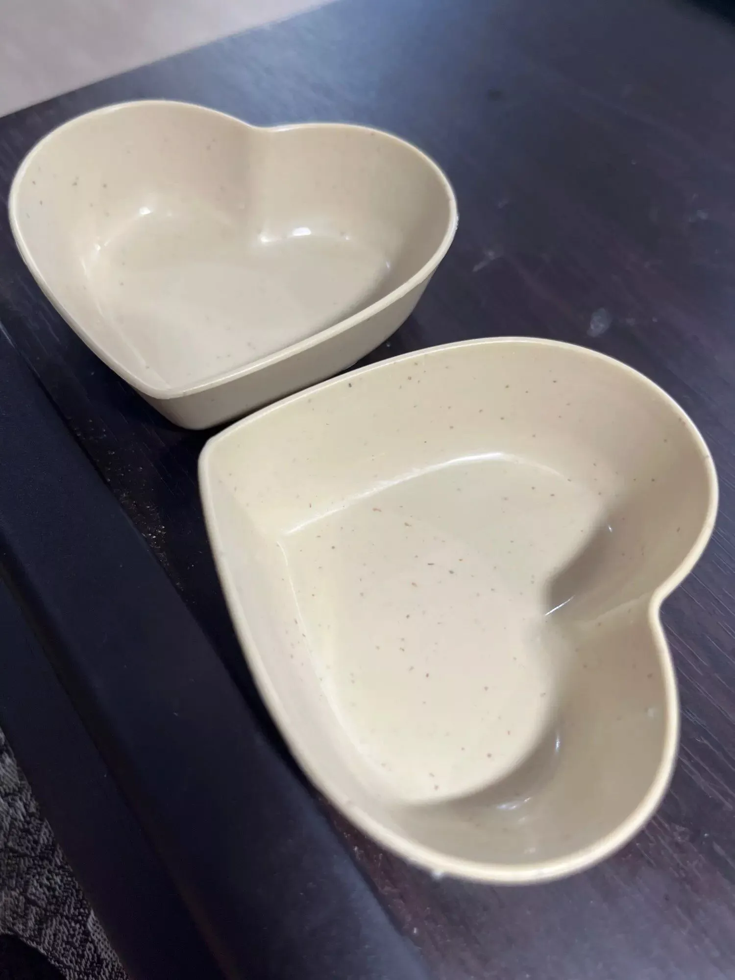 these heart-shaped seasoning dishes are so cute and practical. made from wheat straw plastic, they are eco-friendly and very durable. the size is just right for holding different seasonings and sauces. they are easy to clean and store, and the heart shape adds a fun touch to any meal. i've used them for dips, spices, and even small snacks. they are a great addition to my kitchen and make mealtime more enjoyable. highly recommend these adorable dishes.