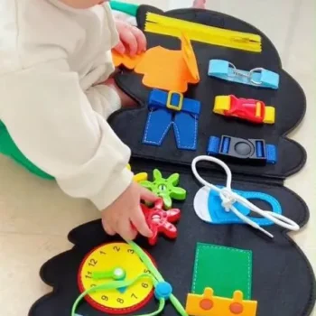 When looking for educational toys for my toddler, I wanted something that would be fun yet beneficial to his development. This busy board is exactly what I was looking for! It features various interactive activities such as using belts or school bag buttons which have greatly improved his hand-eye coordination and fine motor skills.