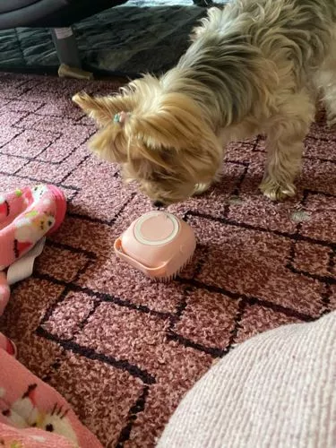 got this pet shampoo massager brush for my dog and it’s been a game changer. he used to get so anxious during bath time, but now he seems much more relaxed. the bristles are soft and gentle, providing a nice massage while effectively cleaning his fur. the brush fits comfortably in my hand and is easy to maneuver, even with a squirmy dog. it lathers the shampoo really well, ensuring that his coat gets a thorough clean. cleaning the brush is a breeze – just rinse it off and it’s ready for the next use. i’ve noticed that my dog’s coat looks healthier and has a nice shine to it since we started using this brush. it’s clear that he enjoys the massaging sensation, as he’s much calmer during baths. i highly recommend this brush to anyone looking for a way to make bath time more enjoyable for their pet.