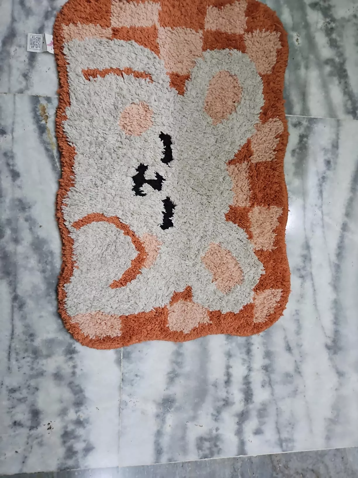 The rug's softness is truly impressive, and I've encountered no issues with shedding. It feels like something you might find at a high-end home goods store. The only minor quibble is the mat's tall fibers, which can occasionally distort the cartoon character's face, adding a whimsical touch. The grip could be slightly better, as I find myself repositioning the mat daily. Nonetheless, tending to this cute mat has become a cherished evening routine.