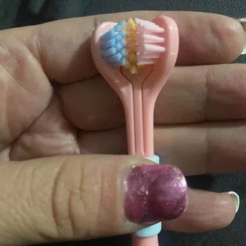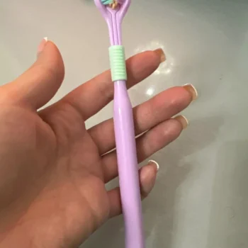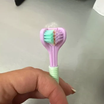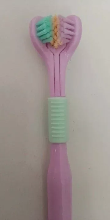 i love this triple-sided toothbrush. it’s a unique design that really works well. the ultra-fine bristles are soft on my gums but do an excellent job cleaning my teeth. it feels like my entire mouth gets a thorough clean every time i use it. the handle is comfortable to hold, and the brush head reaches all the hard-to-reach areas. my teeth feel cleaner, and my breath is fresher. it’s a fantastic toothbrush that i highly recommend to anyone looking to upgrade their oral care routine.