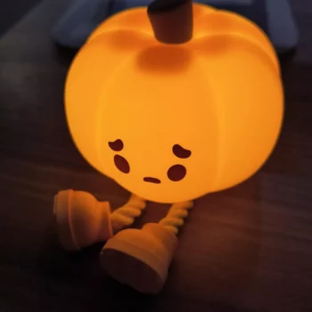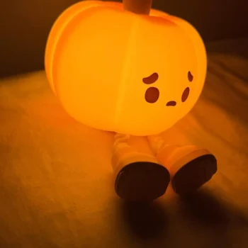 This pumpkin LED night light, let me tell, it's a fantastic addition to my kiddo room. My daughter just can't get enough of how soft and squishy this thing is. It's like her own personal stress ball - but way cooler because it lights up! And as for me I'm all about that durable silicone material they've used. You know what that means right? No worries whatsoever about any breakages or damage – perfect for those tiny hands. But wait,’s more! This isn’t your regular run-of-theill night light; it comes with a dimmable which is honestly such a game-changer. We can now easily adjust the brightness level according to our needs or mood - whether we're reading bedtime stories or simply unwinding from the day, making every moment even more enjoyable than before. And here’s another bonus point: its USB rechargeability feature. This right here saves us from the constant hassle of battery replacements – an absolute life-saver for busy parents like us who are always on-the-go! So not only does this nifty gadget provide comfort and fun for my little one but also convenience and practicality for us adults too! So yeah, if you’re looking around trying to find something unique yet functional as a night light option then look no further because this cute pumpkin LED has got you covered in every possible way.